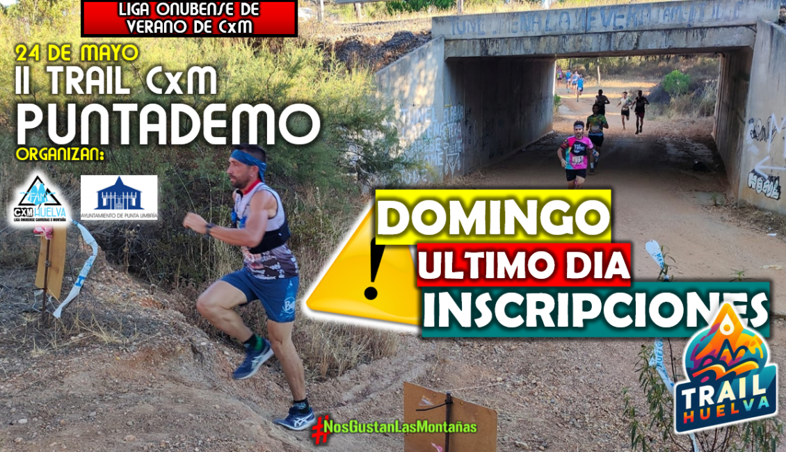 ⏰ El domingo 18 de Mayo termina el plazo de inscripción para el II CXM “TRAIL PUNTADEMO” PUNTA UMBRÍA, que se celebrará el próximo 24 de Mayo a partir de las 11:00h.