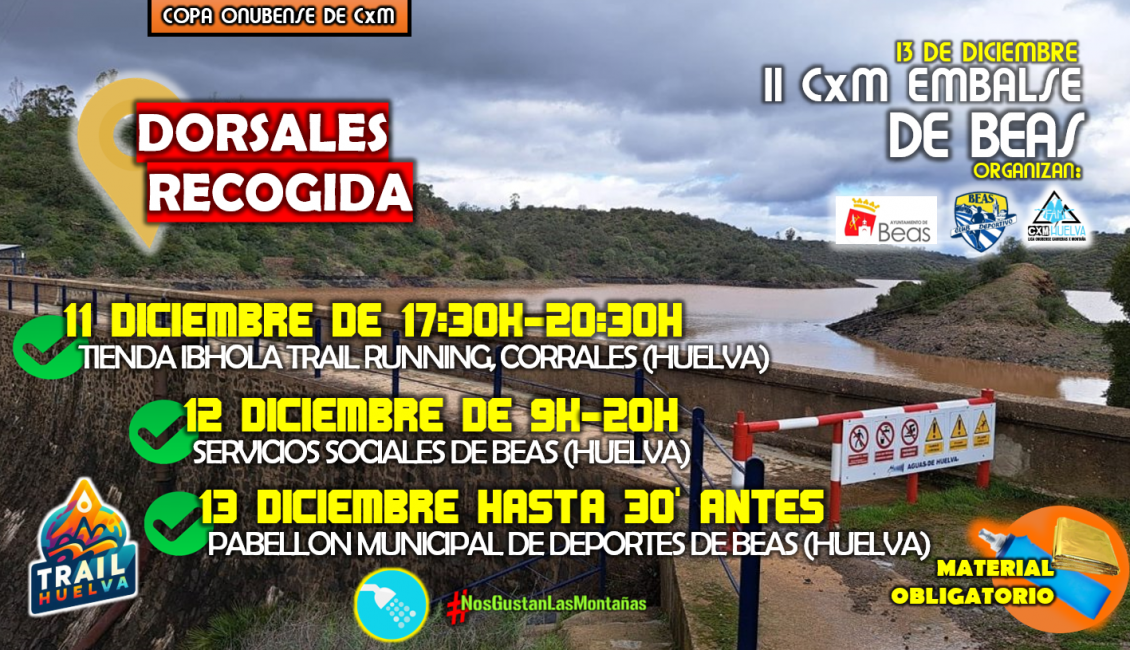 😎 El 13 de Diciembre, disputaremos la siguiente ultima prueba puntuable de la Copa Onubense de CxM, la II CxM Embalse de Beas, a partir de las 10:00h, en Beas (Huelva).