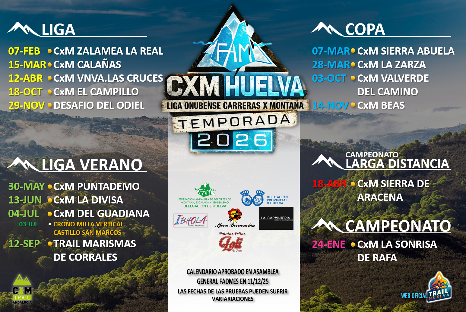 Calendario, eventos y clasificaciones de la Liga Onubense de Carreras por Montaña